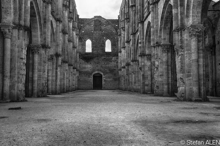 Keywords: black and white monochrome tuscany italy monastery abbey ruin san galgano chiusdino siena hdr architecture florence