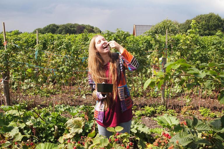Keywords: blackberries blackberry picking tests young woman long hair gardening
