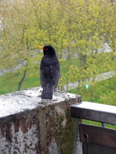 Keywords: blackbird bird songbird rain plumage feather raindrop wet spring dress black
