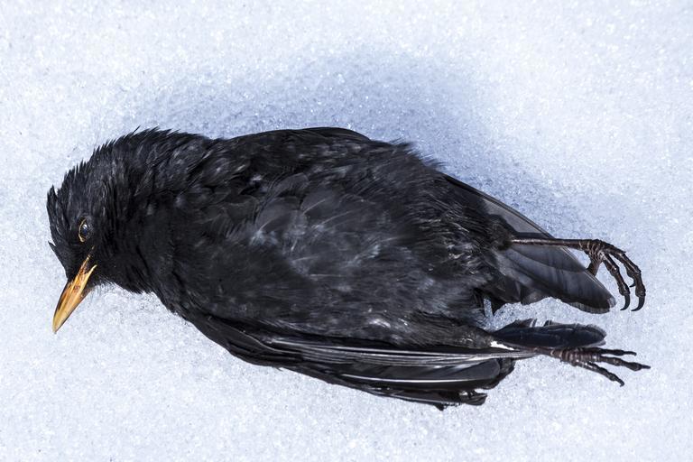 Keywords: blackbird bird winter snow nature die freeze starvation death