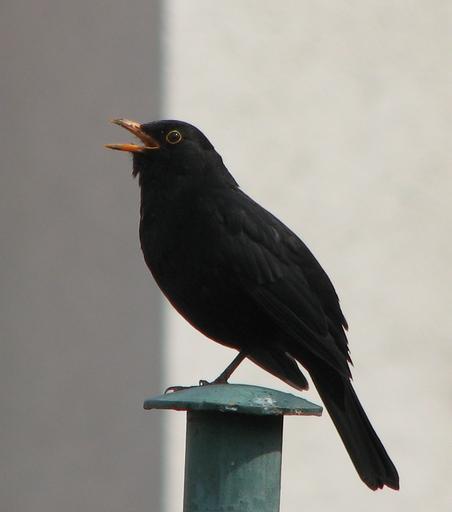 Keywords: Blackbird, singing.JPG en Male blackbird singing own own photo HTO 2009-04-09 Turdus merula singing male