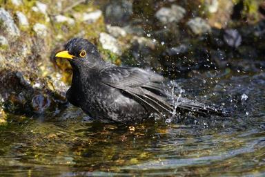 Keywords: blackbird true sparrow bird songbird male wildlife photography black plumage throttle bird animals