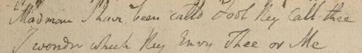 | View Original: | Blake_manuscript_-_Notebook_1808_-_08_Madman_I_have_bell_calld_Foll_they_call_thee.jpg (1389x206) | |||