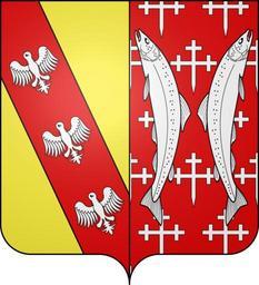 | Keywords: Blason de la ville de Delme (Moselle).svg blazon of en city of Delme Delme Moselle Delme fr Parti d 'or à la bande de gueules chargée de trois alérions d'argent et de gueules semé de croix recroisetées au pied fiché d'argent à deux saumons adossés de même spax89 Projet Blasons Own spax89 v -Blasons other versions Delme Moselle Semy of Crosses Salmons in heraldry Alerions in heraldry Coats of arms of cities in Moselle SVG coats of arms of France Derivatives of the Coat of arms of Lorraine DEFAULTSORT Delme |
