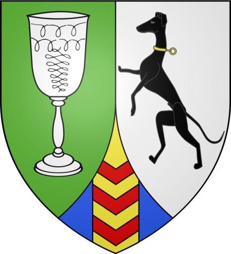 | Keywords: Blason de la ville de Wildenstein (68).svg blazon of en city of Wildenstein Wildenstein Haut-Rhin Wildenstein fr Parti au premier de sinople au verre à boire sur pied d'argent avec décors gravés de sable au second d'argent au lévrier rampant de sable lampassé de gueules colleté et bouclé d'or enté en pointe d'azur au pal d'or chargé de trois chevrons renversés de gueules spax89 Projet Blasons Own spax89 v -Blasons other versions Wildenstein Haut-Rhin Greyhounds in heraldry Drinking glasses in heraldry Enté en point shields Coats of arms of cities in Haut-Rhin SVG coats of arms of France DEFAULTSORT Wildenstein |