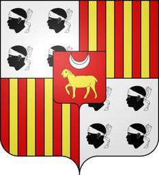 Keywords: Blason de la ville de Bouquet (30).svg blazon of en city of Bouquet Bouquet Gard Bouquet Gard fr Ecartelé au premier et au quatrième d'argent aux quatre têtes de maure de sable tortillées du champ au deuxième et au troisième de gueules aux quatre pals d'or ; sur le tout de gueules au mouton d'or surmonté d'un croissant d'argent it inquartato nel 1ºe 4º d'argento a quattro teste di moro di nero attortigliate del campo; nel 2º e 3º di rosso a quattro pali d'oro; sul tutto di rosso al montone d'oro sormontato da un crescente d'argento spax89 Projet Blasons Own spax89 v -Blasons other versions Bouquet Gard Blason Sheep in heraldry 1 crescent argent in heraldry Coats of arms of cities in Gard SVG coats of arms of France DEFAULTSORT Bouquet Gard