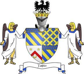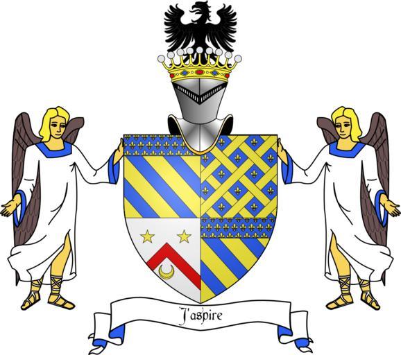 | Keywords: Blason famille Vismes-Comtes (avec ornements).svg fr Blason des comtes de Vismes écartelé aux 1 et 4 d'or à trois bandes d'azur au chef du second semé de fleurs-de-lis du champ au 2 d'azur fretté d'or semé dans les claires-voies de fleurs-de-lis du même au 3 d'argent au chevron de gueules accolé en chef de deux étoiles d'or et en pointe d'un croissant du même l'écu tenu par deux anges au naturel à la couronne de comte et à l'aigle de sable en cimier own Syryatsu 2009-03-21 SVG coats of arms of families of France De Vismes family Quarterly shields Or three bends azure Chiefs in heraldry Semé-de-lis Fretty of eight Argent a chevron gules 2 five rays Or in heraldry 1 crescent Or in heraldry Argent azure gules Or in heraldry Angels in supporters Eagles in crest |
