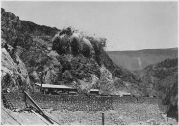 | Keywords: "The blast which removed the top of Lookout Point to provide location for cableway runway. Black Canyon Highway... - NARA - 293718.jpg Scope and content Photograph from Volume Two of a series of photo albums documenting the construction of Hoover Dam Boulder City Nevada General notes 293718 Local identifier Department of the Interior Bureau of Reclamation Engineering and Research Center 05/18/1981 - 03/04/1988 NARA's Rocky Mountain Region Denver NRGA Building 48 Denver Federal Center West 6th Avenue and Kipling Street Denver CO 80225-0307 1932-08-10 Record group Record Group 115 Records of the Bureau of Reclamation 1889 - 2008 Record group ARC 444 Photograph albums compiled 1903 - 1972 Series ARC 293611 File unit File unit ARC Variant control numbers NAIL Control Number NRG-115-CONSTPHO85006-BC21353 Other versions <gallery> File The_blast_which_removed_the_top_of_Lookout_Point_to_provide_location_for_cableway_runway _Black_Canyon_Highway _-_NARA_-_293718 tif tif File The_blast_which_removed_the_top_of_Lookout_Point_to_provide_location_for_cableway_runway _Black_Canyon_Highway _-_NARA_-_293718 jpg jpg </gallery> NARA-cooperation PD-USGov Six Companies Inc cableways at Hoover Dam construction site runway Nevada 1932-08-10 1932 in Nevada Hoover Dam |