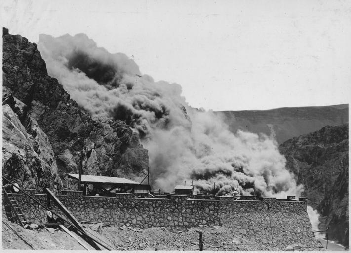 | Keywords: "Blasting operations at Lookout Point on the Nevada rim of Black Canyon. The point which was used for over a year as... - NARA - 293719.jpg Scope and content Photograph from Volume Two of a series of photo albums documenting the construction of Hoover Dam Boulder City Nevada General notes 293719 Local identifier Department of the Interior Bureau of Reclamation Engineering and Research Center 05/18/1981 - 03/04/1988 NARA's Rocky Mountain Region Denver NRGA Building 48 Denver Federal Center West 6th Avenue and Kipling Street Denver CO 80225-0307 1932-08-10 Record group Record Group 115 Records of the Bureau of Reclamation 1889 - 2008 Record group ARC 444 Photograph albums compiled 1903 - 1972 Series ARC 293611 File unit File unit ARC Variant control numbers NAIL Control Number NRG-115-CONSTPHO85006-BC21354 Other versions <gallery> File Blasting_operations_at_Lookout_Point_on_the_Nevada_rim_of_Black_Canyon _The_point_which_was_used_for_over_a_year_as _-_NARA_-_293719 tif tif File Blasting_operations_at_Lookout_Point_on_the_Nevada_rim_of_Black_Canyon _The_point_which_was_used_for_over_a_year_as _-_NARA_-_293719 jpg jpg </gallery> NARA-cooperation PD-USGov Six Companies Inc cableways at Hoover Dam construction site runway Nevada 1932-08-10 |