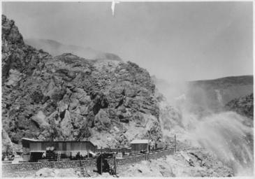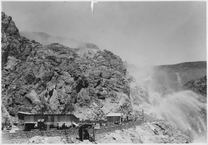 | Keywords: "Blasting operations below Lookout Point for Black Canyon Highway." - NARA - 293709.jpg Scope and content Photograph from Volume Two of a series of photo albums documenting the construction of Hoover Dam Boulder City Nevada General notes 293709 Local identifier Department of the Interior Bureau of Reclamation Engineering and Research Center 05/18/1981 - 03/04/1988 NARA's Rocky Mountain Region Denver NRGA Building 48 Denver Federal Center West 6th Avenue and Kipling Street Denver CO 80225-0307 1932-07-09 Record group Record Group 115 Records of the Bureau of Reclamation 1889 - 2008 Record group ARC 444 Photograph albums compiled 1903 - 1972 Series ARC 293611 File unit File unit ARC Variant control numbers NAIL Control Number NRG-115-CONSTPHO85006-BC21331 Other versions <gallery> File Blasting_operations_below_Lookout_Point_for_Black_Canyon_Highway _-_NARA_-_293709 tif tif File Blasting_operations_below_Lookout_Point_for_Black_Canyon_Highway _-_NARA_-_293709 jpg jpg </gallery> NARA-cooperation PD-USGov Construction of the Hoover Dam |