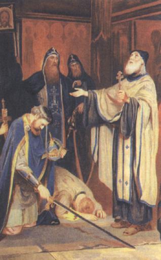 | Keywords: Blessing Dmitry Ivanovich (Novoskoltsev).jpg  «П еподобный Се гий благословляет Дмит ия на бо ьбу с  амаем»<br />ка тина Transferred from http //ru wikipedia org ru wikipedia; transfer was stated to be made by User Berillium <br/> Original text http //www sgu ru/rus_hist/ wid 634 before 1919 года<br/> 2007 05 26 original upload date  овоскольцев А  1853 1919 Original uploader was Александ Соколов at http //ru wikipedia org ru wikipedia PD-art original upload log page ru wikipedia Sergij_i_Dmitrij jpg 2007-05-26 09 49 Александ Соколов 298×480× 173129 bytes <nowiki> Изоб ажение  азвание «П еподобный Се гий благословляет Дмит ия на бо ьбу с  амаем» Описание ка тина Авто  овоскольц�</nowiki> Battle of Kulikovo Sergius of Radonezh in history paintings Dmitry Donskoy in history paintings Aleksandr Novoskoltsev |