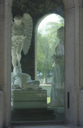 Keywords: Blocher Memorial interior - Forest Lawn, Buffalo.jpg 42 55 25 504 N 78 51 56 876 W Interior of the Blocher Memorial in Forest Lawn Cemetery Buffalo NY From a sign on the memorial These statues represent Mr and Mrs John Blocher standing beside their only child who died following a year's illness The statue above is imaginative The tomb is beneath the floor of monument Own 2006-07-14 Dave Pape PD-user Forest Lawn Cemetery Buffalo Davepape |