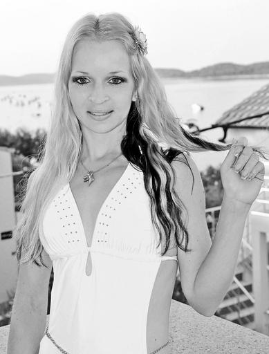 Keywords: blonde woman bikini beauty black and white hair smile sexy