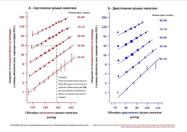 Keywords: Blood pressure And risk for IHD (acc JNC 7).jpg en Two charts representing the absolute risk for development of Ischemic Heart Disease IHD related to the usual blood pressure Materials form the Seventh Report of the Joint National Committee on Prevention Detection Evaluation and Treatment of High Blood Pressure Charts are tagged in BULGARIAN bg Г афики п ече тани от доклада на Седмата ационална Комисия по П облемите на Хипе тонията в САЩ и с обозначения на бълга ски език Own Aceofhearts1968 2008-12-17 Hypertension Medical charts Diagrams in Bulgarian |