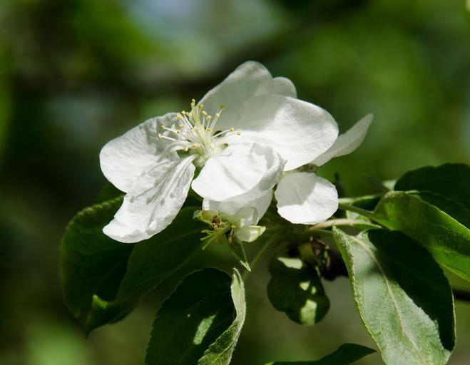 Keywords: bloom flowers apple flower apple tree tree branch spring leaves green leaves garden