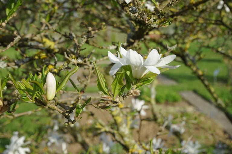 Keywords: blossom bloom closed white star magnolie magnolia ornamental shrub ornamental plant magnolia stellata ornamental