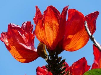 Keywords: blossom bloom red tulip tree bright african tulpenbaum spathodea campanulata bignoniaceae plants bignoniaceae bell shaped panicle sepals