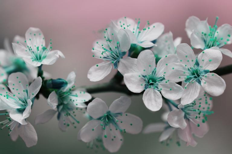 Keywords: blossom petals teal green spring nature flower bloom plant blooming garden season floral natural fresh tree botany summer cherry branch blossoming white gardening bud leaf color