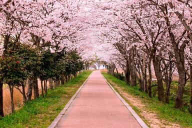 Keywords: blossom travel path street flower tree landscape sky