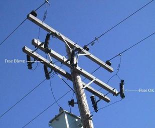 | Keywords: Blown Fuse Cutout 640.jpg Pole mount transformer protected by three fusible cutouts One fuse element white barrel has blown and is hanging down 12 47 kV 3 Phase distribution line at Gardiner Dam Saskatchewan Canada own original text I created this work entirely by myself 1 Photo taken June 7 2001 Wtshymanski talk Wtshymanski original upload log en wikipedia Drilnoth CommonsHelper page en wikipedia Blown_Fuse_Cutout_640 jpg 2009-01-16 19 52 Wtshymanski 579×480× 39117 bytes <nowiki> Pole mount transformer protected by three fusible cutouts One fuse element white barrel has blown and is hanging down 12 47 kV 3 Phase distribution line at Gardiner Dam Saskatchewan I created this work entirely by</nowiki> Pole mount transformers Burnt fuses High voltage fuses Power lines Utility poles in Canada |