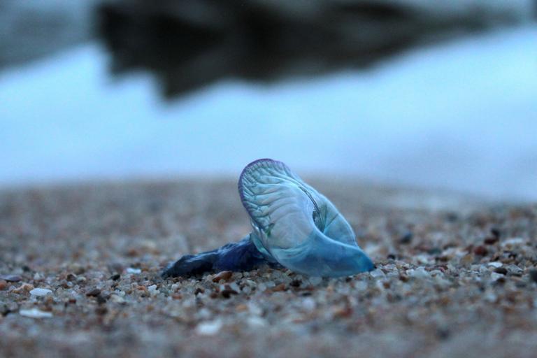 Keywords: blue bottle jellyfish animal nature invertebrate beach