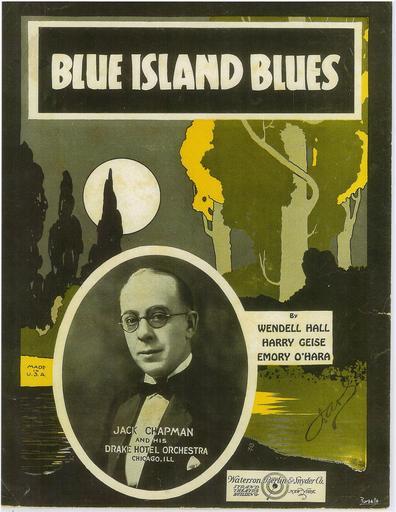 Keywords: Blue Island Blues.JPG Blue Island Blues sheet music cover with insert photo of Jack Chapman bandleader at the Drake Hotel Chicago Cover of sheet music published by Waterson Berlin and Snyder Publishing 1923 Wendell Hall Harry Geise Emory O'Hara Sheet music cover artwork signed Barbelle PD-Art disputed Music in 1923 Sheet music covers of New York City Blue Island Illinois 1923 in Illinois Drake Hotel Chicago Albert Wilfred Barbelle |