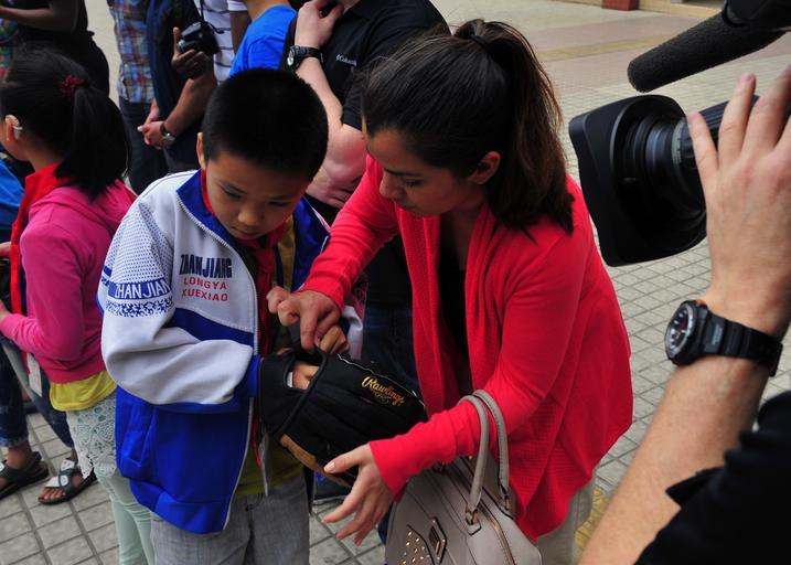 Keywords: Blue Ridge, C7F FCPOA partner with PLA(N) during visit to Zhanziang Special Education School 150422-N-RR852-040.jpg en 150422-N-RR852-040 ZHANJIANG People's Republic of China April 22 2015 - Legalman 1st Class Giannina Gutierrez right attached to U S 7th Fleet staff helps a child try on a baseball glove while first class petty officers attached to the U S 7th Fleet flagship USS Blue Ridge LCC 19 and embarked 7th Fleet staff give toys to several children at the Zhanjiang Special Education School Blue Ridge is conducting a port visit to Zhanjiang to build naval partnerships with China's South Sea Fleet to ensure peace and prosperity for the entire region U S Navy photo by Mass Communication Specialist 1st Class Bobby Northnagle/ RELEASED 2015-04-22 Robert Northnagle https //www dvidshub net/image/1890569 150422-N-RR852-040 2015-04-22 19 12 ZHANZIANG CN PD-USGov-Military-Navy USS Blue Ridge LCC-19 Images from DoD uploaded by Fæ |