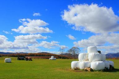 Keywords: blue sky pasture ranch grass shinshu tractor cloud north shirakabakogen