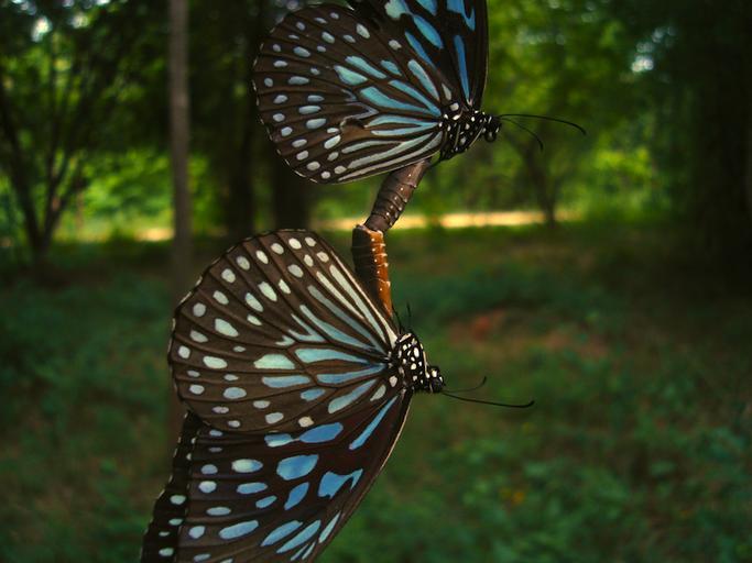 Keywords: Blue Tiger mating.jpg Blue Tiger mating Own Dharani prakash cc-zero Tirumala limniace Nymphalidae sex