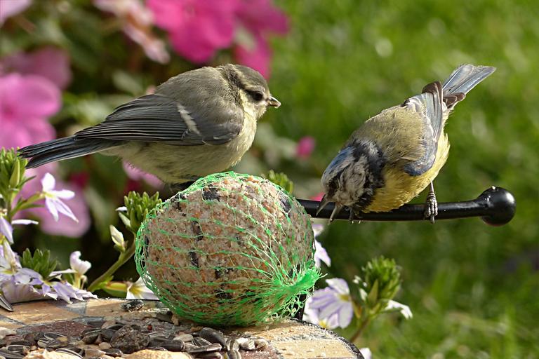 Keywords: blue tit cyanistes caeruleus bird young foraging garden