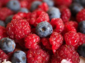 Keywords: blueberries raspberries berries fruits sweet red blue delicious vitamins healthy