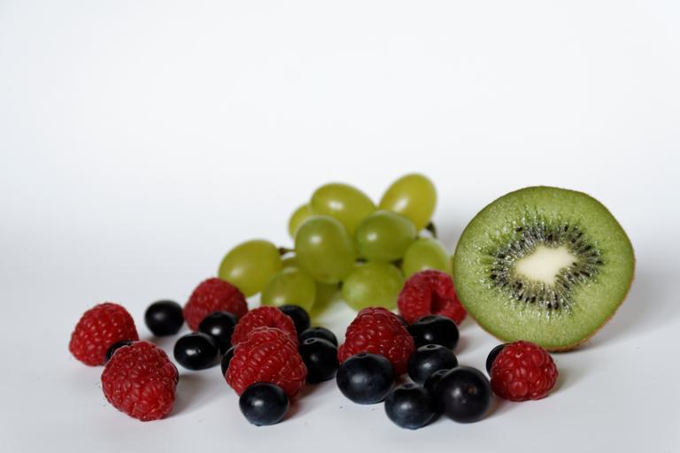 Keywords: blueberries raspberries grapes kiwi fruit healthy vitamins fruits nutrition delicious eat frisch ripe bless you food red