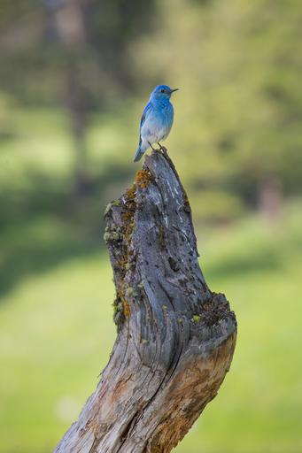 Keywords: bluebird perched wildlife nature tree stump thrush feathers portrait looking