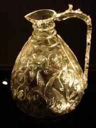 | Keywords: BLW Rock Crystal Ewer (2).jpg Rock Crystal Ewer about 1000-50 <br /> Egypt probably Cairo <br /> Carved rock crystal <br /> <br /> This rare ewer was carved from a single piece of extremely hard transparent stone known as rock crystal On either side a bird of prey attacks an antelope The image may have symbolised the ruler's ability to overcome his enemies <br /> <br /> The plain surfaces such as the band around the neck were probably once covered with mounts of gold and other materials These would have contrasted with the clear crystal which one writer of the time described as combining the properties of air and water Adam Morgan Victoria and Albert Museum http //www vam ac uk/ 7904-1862 http //collections vam ac uk/item/O69906/ewer/ PD Pitchers Rock crystal objects Fatimid Rock Crystal Ewer in Victoria and Albert Museum London |