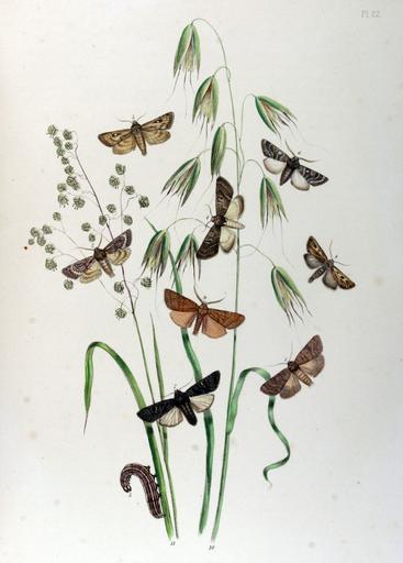 Keywords: BMAT1-22.jpg en Avena fatua; Briza media Lytaea umbrosa; Lytaea leucographa; Lytaea albimacula; Charaeas cespitis; Charaeas nigra; Cerapteryx graminis; Rusina ferruginea Plate 22 1845 British Moths and their Transformations Volume I 1845 http //caliban mpiz-koeln mpg de/westwood/moths1/high/IMG_3322 html Henry Noel Humphreys and John Obadiah Westwood PD-old Uploaded with UploadWizard British Moths and their Transformations Volume I |