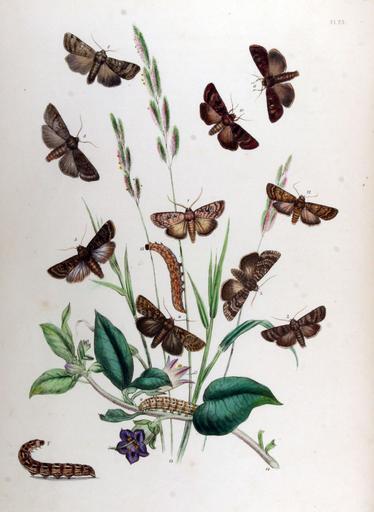 Keywords: BMAT1-25.jpg en Atropa belladonna; Category Polypogon littoralis Graphiphora subrosea; Graphiphora renigera; Graphiphora pyrophila; Graphiphora crassa; Graphiphora augur; Graphiphora baja; Graphiphora tristigma; Graphiphora brunnea; Graphiphora erythrocephala Plate 25 1845 British Moths and their Transformations Volume I 1845 http //caliban mpiz-koeln mpg de/westwood/moths1/high/IMG_3533 html Henry Noel Humphreys and John Obadiah Westwood PD-old Uploaded with UploadWizard British Moths and their Transformations Volume I |