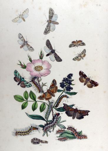 Keywords: BMAT1-41.jpg en Rosa canina; Ligustrum vulgare Apatela leporina; Apatela bradyporina; Apatela aceris; Bryophila glandifera; Bryophila perla; Dipthera orion; Thyatira batis; Thyatira derasa; Scoliopteryx libatrix Plate 41 1845 British Moths and their Transformations Volume I 1845 http //caliban mpiz-koeln mpg de/westwood/moths1/high/IMG_3583 html Henry Noel Humphreys and John Obadiah Westwood PD-old Uploaded with UploadWizard British Moths and their Transformations Volume I