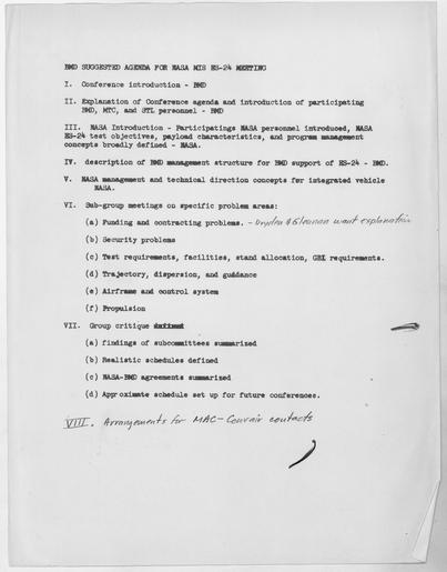 | Keywords: BMD Suggested Agenda for NASA MIS HS-24 Meeting - NARA - 278219.tif Scope and content Suggested agenda for the NASA MIS HS-24 meeting General notes 278219 Local identifier National Aeronautics and Space Administration 10/01/1958 - NARA's Southwest Region Fort Worth NRFA 1400 John Burgess Drive Fort Worth TX 76140 Record group Record Group 255 Records of the National Aeronautics and Space Administration 1903 - 2006 Record group ARC 582 Source Files on Project Mercury compiled 1952 - 1968 Series ARC 278158 File unit MA-6 Public Affairs Office PAO 12/30/1960 - 03/05/1962 File unit ARC 278218 Variant control numbers NAIL Control Number NRFF-255-70-39 1 -BMD yes Other versions NARA-cooperation PD-USGov Mercury-Atlas 6 |