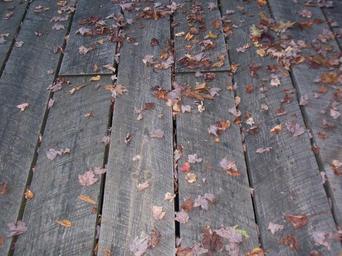 Keywords: boardwalk weathered leaves autumn fall