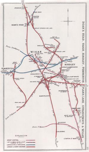 | Keywords: Boar's Head, Haigh, Hindley, Pemberton, Plank Lane, Strangeways & Wigan RJD 77.jpg Railway Junctions in Boar's Head Haigh Hindley Pemberton Plank Lane Strangeways Wigan pre grouping Railway Junction Diagram and 1907 1914 Railway Clearing House Author died more than 70 years ago - public domain PD-old DEFAULTSORT 077 Railways Junctions Diagram 1914 041-080 Greater Manchester RJD Lancashire RJD 1914 Great Central Railway RJD Lancashire and Yorkshire Railway RJD London and North Western Railway RJD |