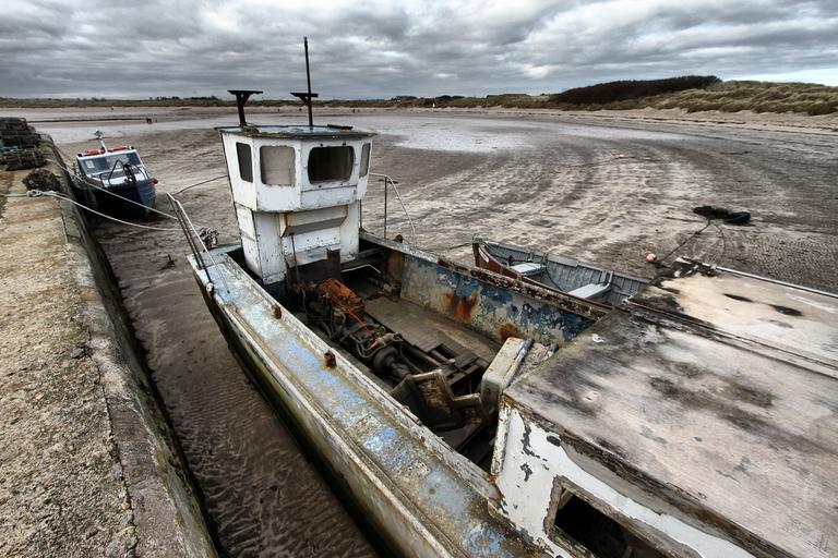 Keywords: boat harbour harbor sea port vessel beadnell northumberland marine maritime fishing boat fishermen low tide