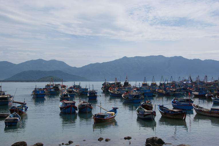 Keywords: boat nha trang vietnam coastline tranquil bay fishing