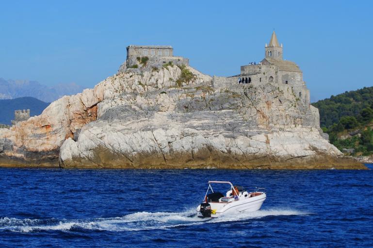 Keywords: boat sea porto venere cliff rocks castle church water liguria italy