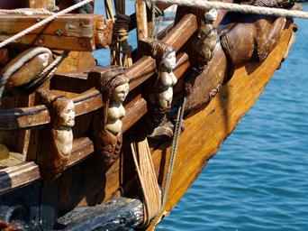 Keywords: boat ship transportation transport sail port tourism mediterranean old history wood rope mast statue carving face