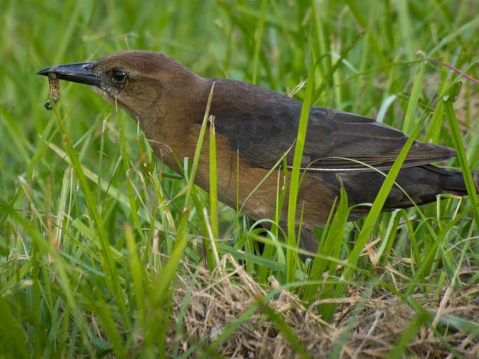Keywords: Boat-tailed Grackle-27527-1.jpg A female Boat-tailed Grackle picking a grub out of the grass <br>Photo taken with an Olympus E-5 in Myakka River State Park FL USA <br>Cropping and post-processing performed with Adobe Lightroom http //www kenthomas us KenThomas us <br> personal website of photographer 2011-10-25 16 15-05 <sup>ISO 8601</sup> Ken Thomas This image is released to the public domain and therefore no permission or credit is required <br>Comments and/or feedback however are always welcome Please see my user page or http //kenthomas us my personal website for details and contact info Quiscalus major Birds of Myakka River State Park Animals of Myakka River State Park Insects of Sarasota County Florida Taken with Olympus E-5 |