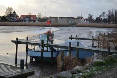 Keywords: boat winter view beach lake village sea water