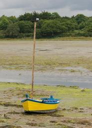 Keywords: boat yellow gulf of morbihan brittany france tide low colorful scenic
