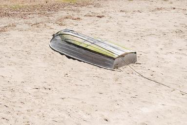 Keywords: BoatDevonport20100109.JPG en An overturned paddle boat on Devonport Beach New Zealand own Anonymous Dissident 2010-01-09 Devonport New Zealand Boats in New Zealand Aluminium boats
