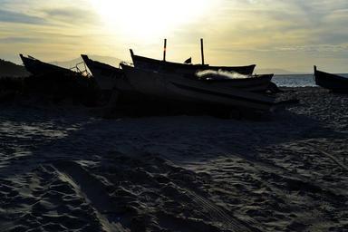 Keywords: boats beach landscape canoe sand cockboat eventide