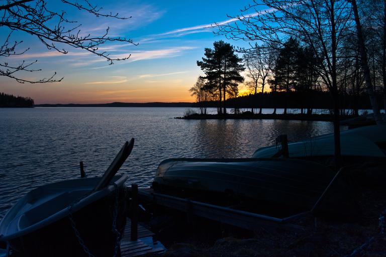 Keywords: boats boat beach water lake west finland the waterfront colors landscape peace of mind sky blue red nature view the horizon